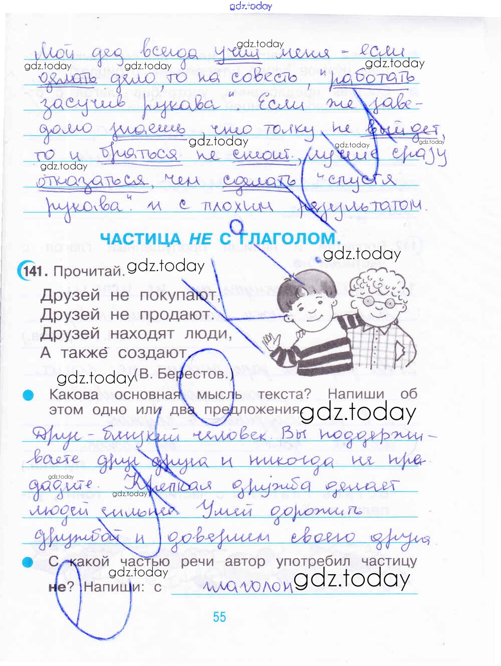 На страницах сайта gdz.today вы найдете учебный и вспомогательный материал, направленный на улучшения знаний школьной программы. ГДЗ - онлайн мир знаний Решение. Часть 2. Страницы 55 Рабочей тетради по Русскому языку для 3 класса Рамзаева, Савинкина Дрофа 2020
