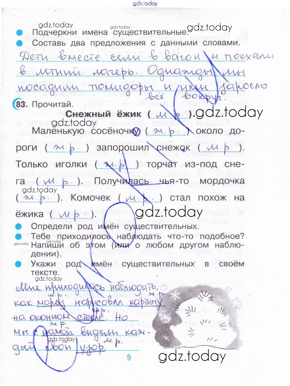 На страницах сайта gdz.today вы найдете учебный и вспомогательный материал, направленный на улучшения знаний школьной программы. ГДЗ - онлайн мир знаний Решение. Часть 2. Страницы 9 Рабочей тетради по Русскому языку для 3 класса Рамзаева, Савинкина Дрофа 2020