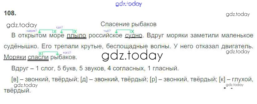 На страницах сайта gdz.today вы найдете учебный и вспомогательный материал, направленный на улучшения знаний школьной программы. ГДЗ - онлайн мир знаний Упражнения 108 Учебнику по Русскому языку для 3 класса Рамзаева Дрофа Ритм 2016