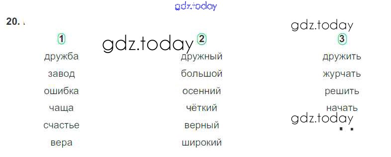 На страницах сайта gdz.today вы найдете учебный и вспомогательный материал, направленный на улучшения знаний школьной программы. ГДЗ - онлайн мир знаний Упражнения 20 Учебнику по Русскому языку для 3 класса Рамзаева Дрофа Ритм 2016