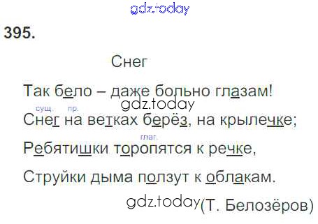 На страницах сайта gdz.today вы найдете учебный и вспомогательный материал, направленный на улучшения знаний школьной программы. ГДЗ - онлайн мир знаний Упражнения 395 Учебнику по Русскому языку для 3 класса Рамзаева Дрофа Ритм 2016