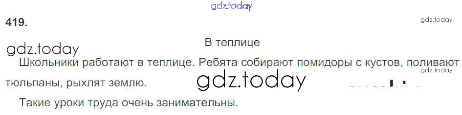На страницах сайта gdz.today вы найдете учебный и вспомогательный материал, направленный на улучшения знаний школьной программы. ГДЗ - онлайн мир знаний Упражнения 419 Учебнику по Русскому языку для 3 класса Рамзаева Дрофа Ритм 2016