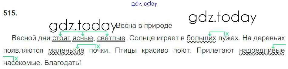 На страницах сайта gdz.today вы найдете учебный и вспомогательный материал, направленный на улучшения знаний школьной программы. ГДЗ - онлайн мир знаний Упражнения 515 Учебнику по Русскому языку для 3 класса Рамзаева Дрофа Ритм 2016