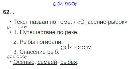 Ответы к Упражнения 62 Учебнику по Русскому языку для 3 класса Рамзаева Дрофа Ритм 2016