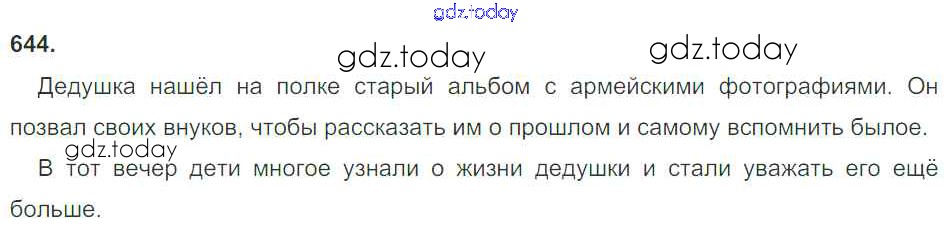 На страницах сайта gdz.today вы найдете учебный и вспомогательный материал, направленный на улучшения знаний школьной программы. ГДЗ - онлайн мир знаний Упражнения 644 Учебнику по Русскому языку для 3 класса Рамзаева Дрофа Ритм 2016