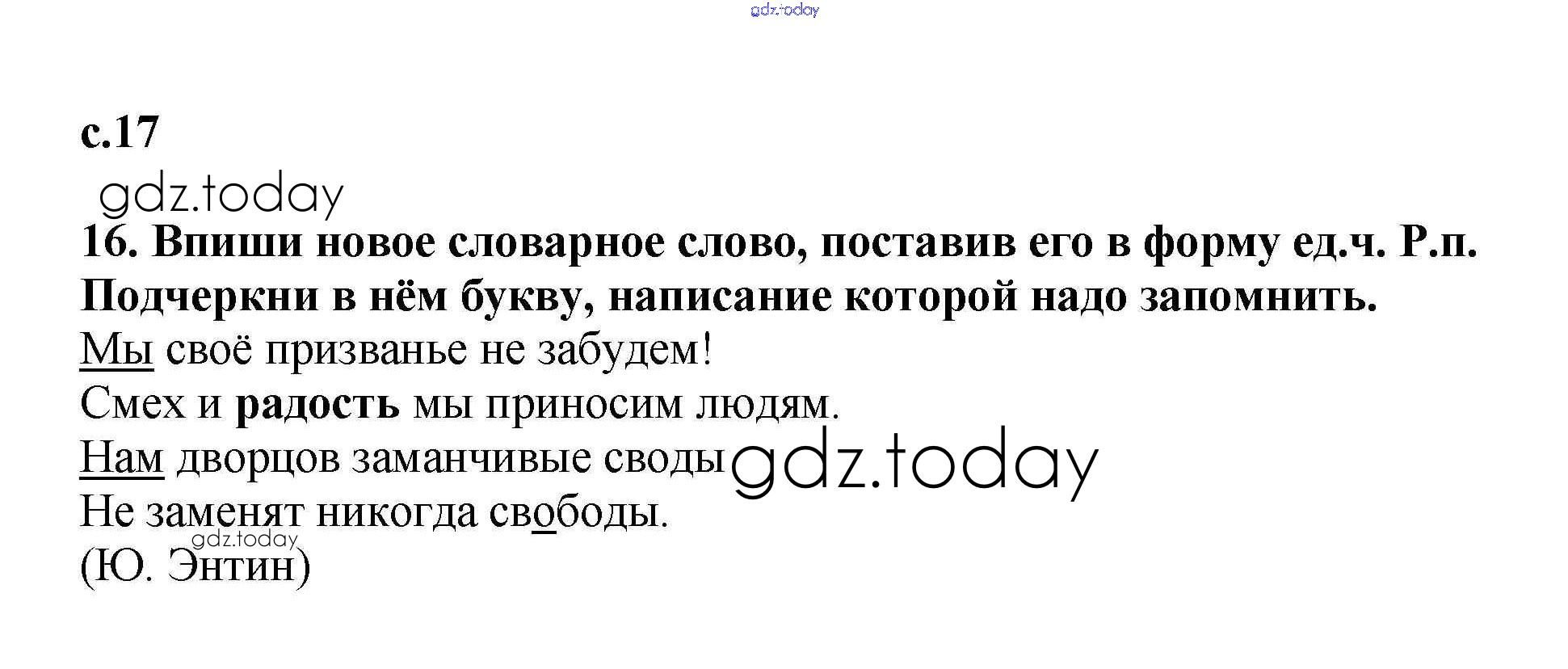 На страницах сайта gdz.today вы найдете учебный и вспомогательный материал, направленный на улучшения знаний школьной программы. ГДЗ - онлайн мир знаний Решение. Часть 1. Страницы 17 Тетради для самостоятельной работы по Русскому языку для 3 класса Байкова Академкнига 2017
