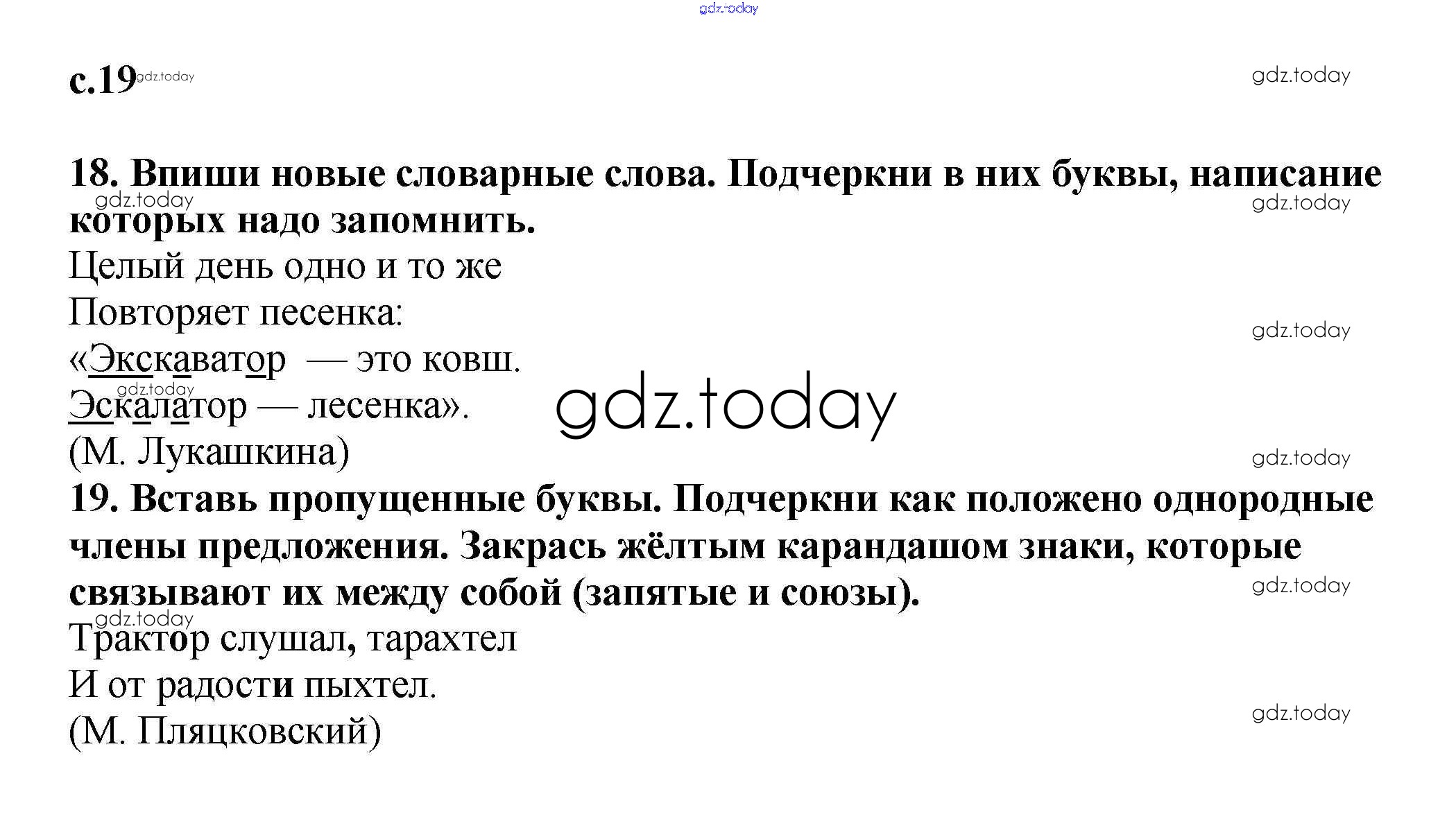На страницах сайта gdz.today вы найдете учебный и вспомогательный материал, направленный на улучшения знаний школьной программы. ГДЗ - онлайн мир знаний Решение. Часть 1. Страницы 19 Тетради для самостоятельной работы по Русскому языку для 3 класса Байкова Академкнига 2017