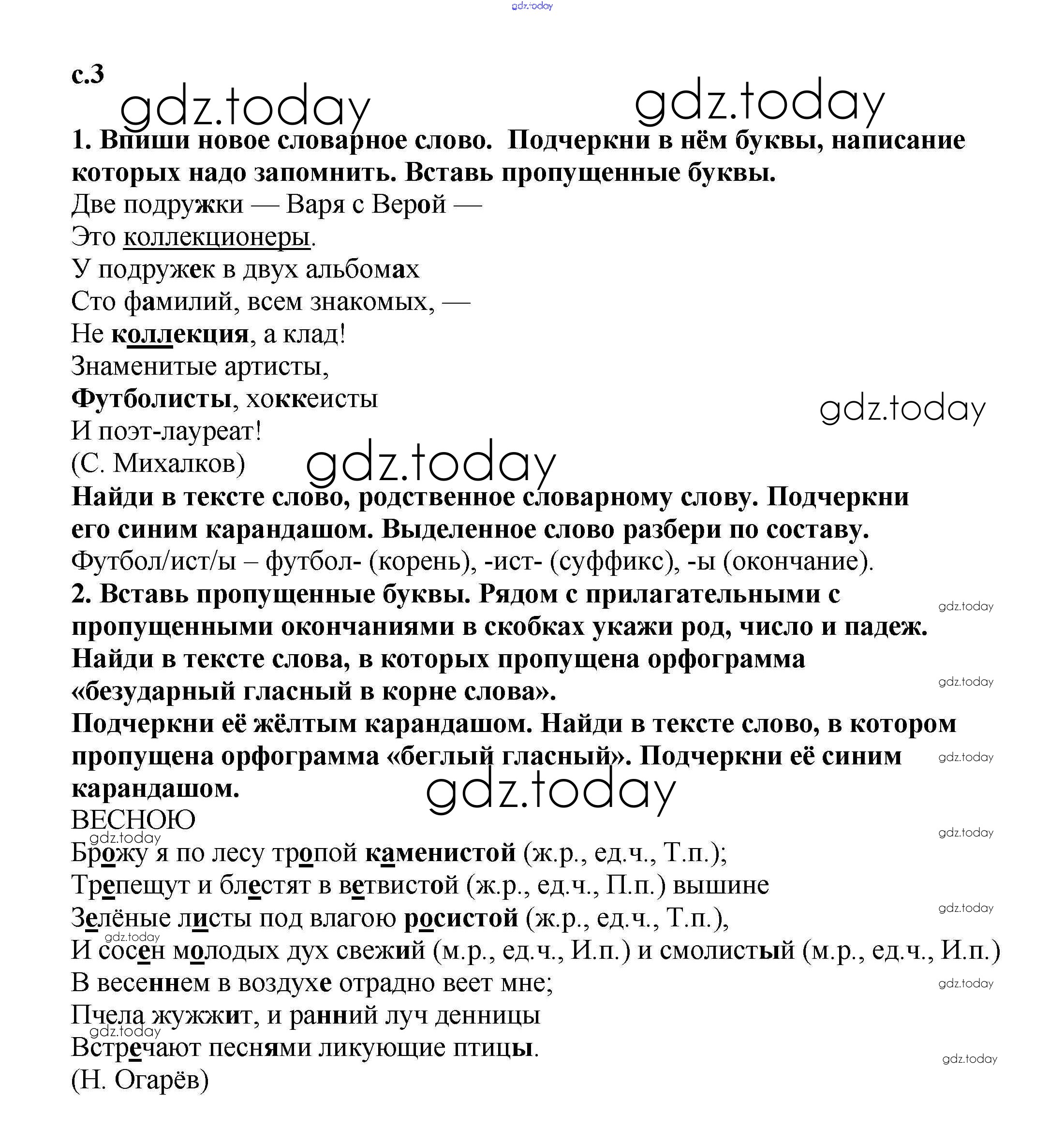 На страницах сайта gdz.today вы найдете учебный и вспомогательный материал, направленный на улучшения знаний школьной программы. ГДЗ - онлайн мир знаний Решение. Часть 1. Страницы 3 Тетради для самостоятельной работы по Русскому языку для 3 класса Байкова Академкнига 2017