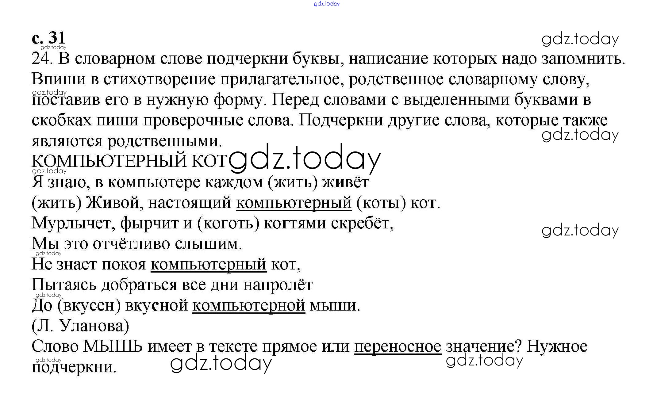 Ответы к Решение. Часть 1. Страницы 31 Тетради для самостоятельной работы по Русскому языку для 3 класса Байкова Академкнига 2017
