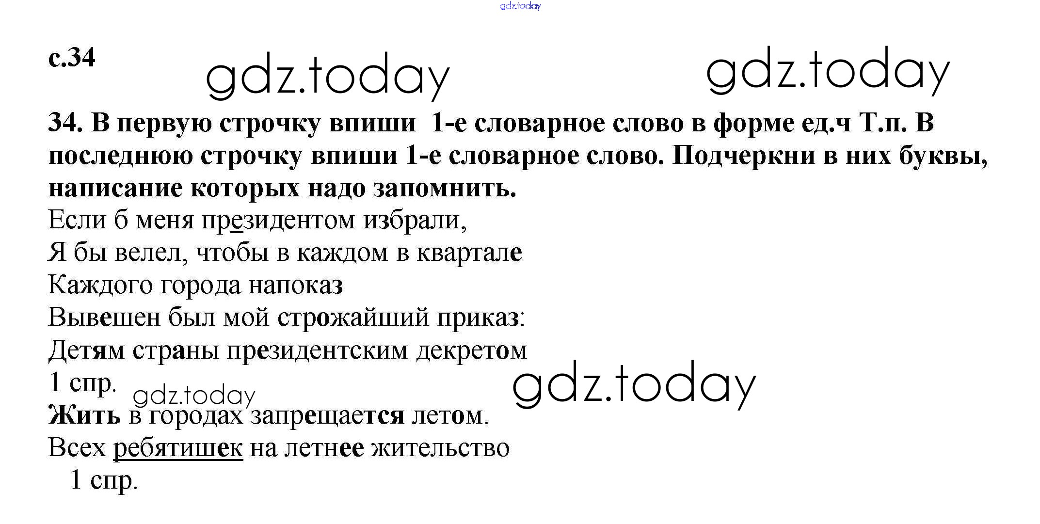 На страницах сайта gdz.today вы найдете учебный и вспомогательный материал, направленный на улучшения знаний школьной программы. ГДЗ - онлайн мир знаний Решение. Часть 1. Страницы 34 Тетради для самостоятельной работы по Русскому языку для 3 класса Байкова Академкнига 2017