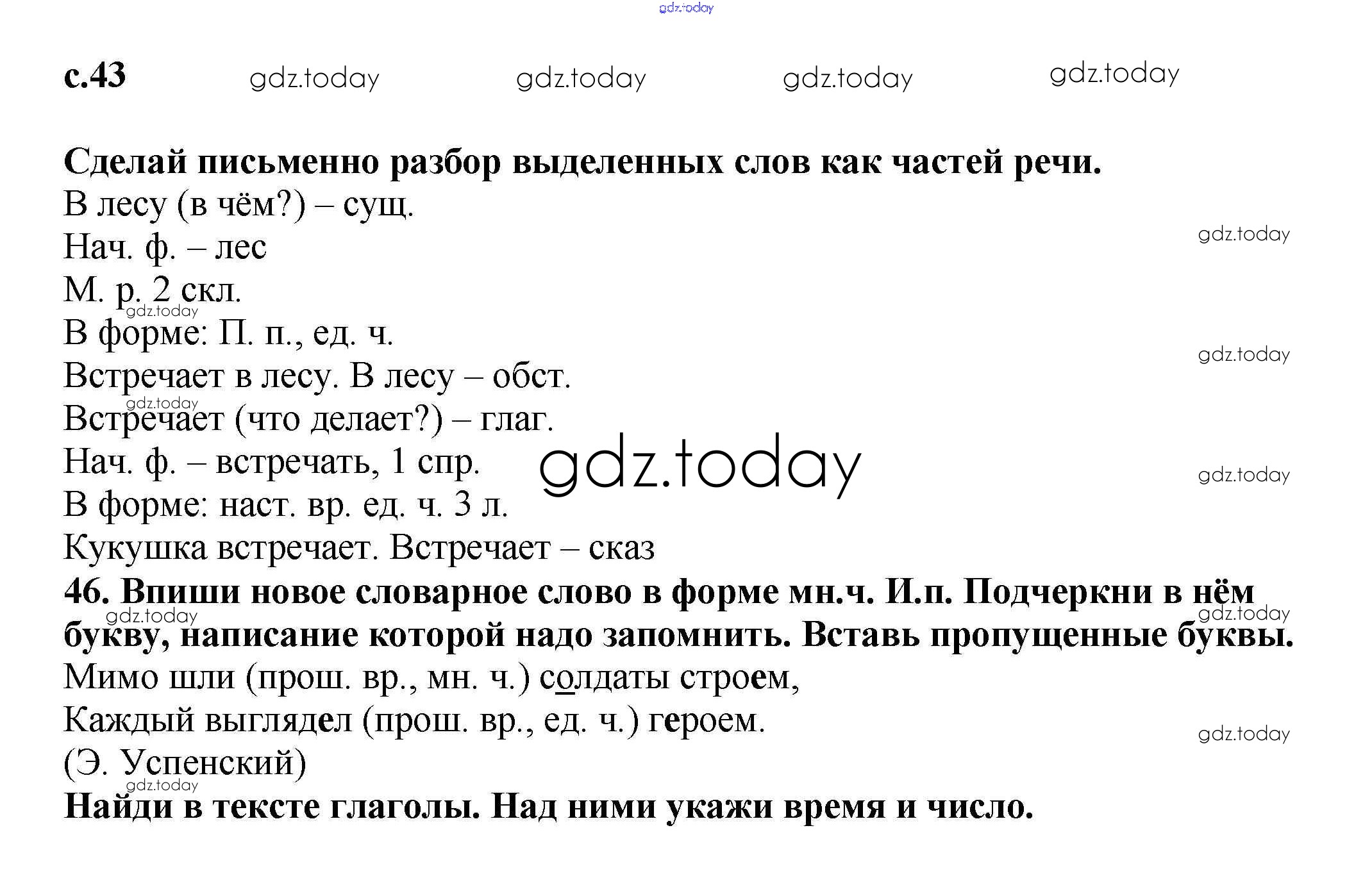 Ответы к Решение. Часть 1. Страницы 43 Тетради для самостоятельной работы по Русскому языку для 3 класса Байкова Академкнига 2017