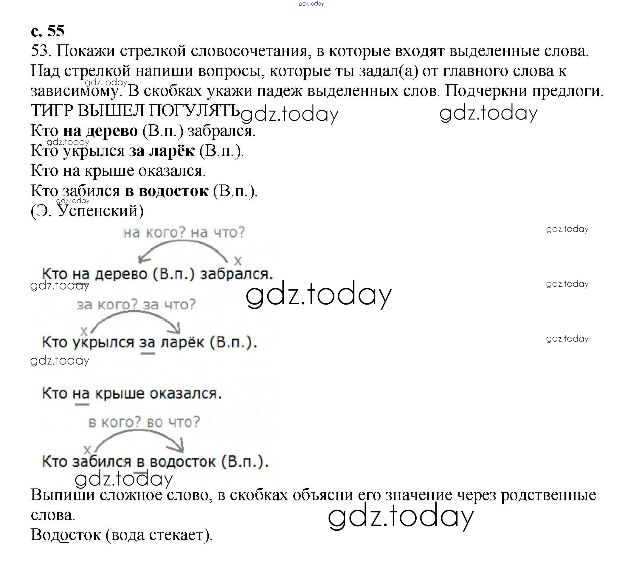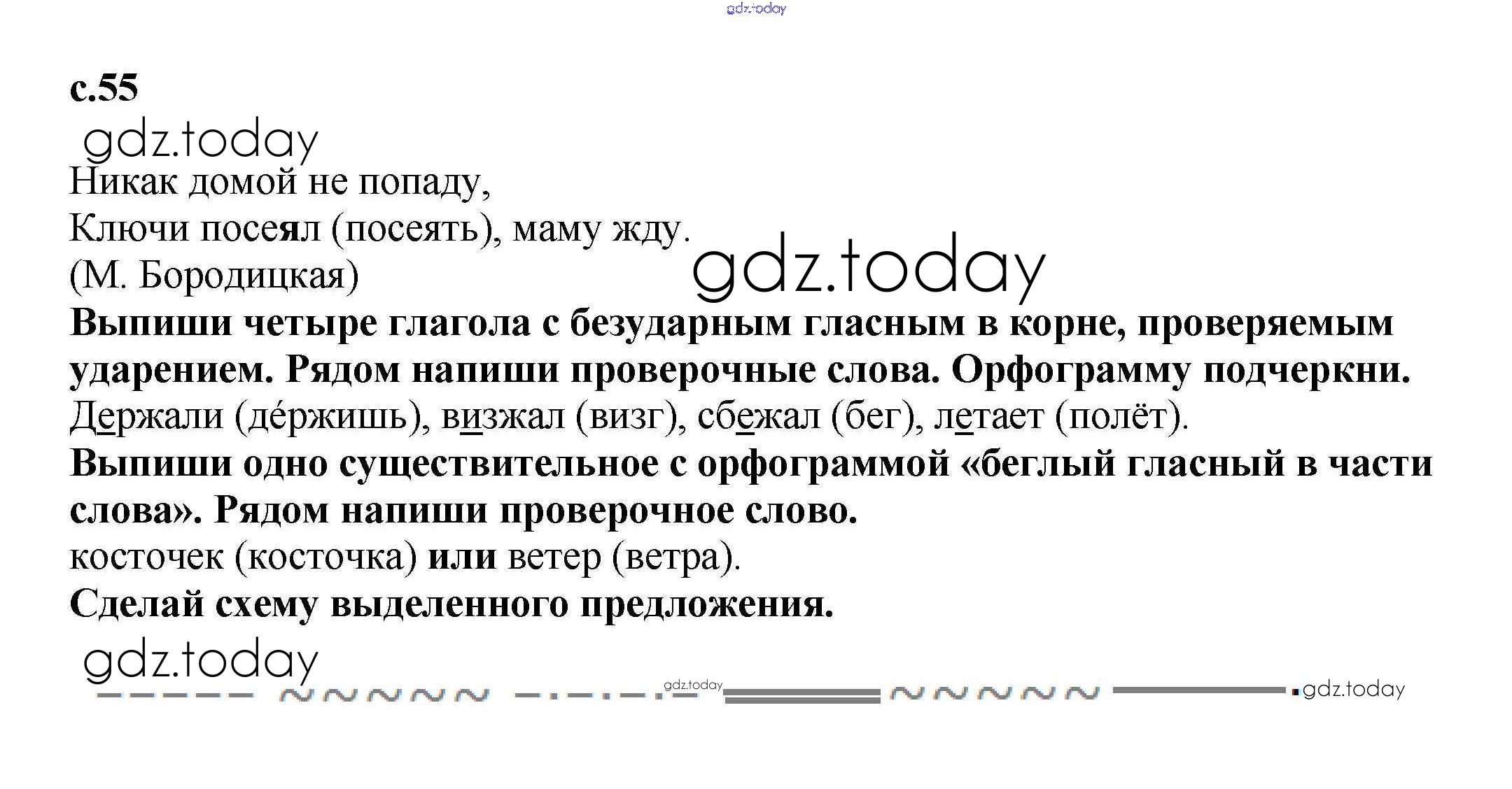 На страницах сайта gdz.today вы найдете учебный и вспомогательный материал, направленный на улучшения знаний школьной программы. ГДЗ - онлайн мир знаний Решение. Часть 1. Страницы 55 Тетради для самостоятельной работы по Русскому языку для 3 класса Байкова Академкнига 2017