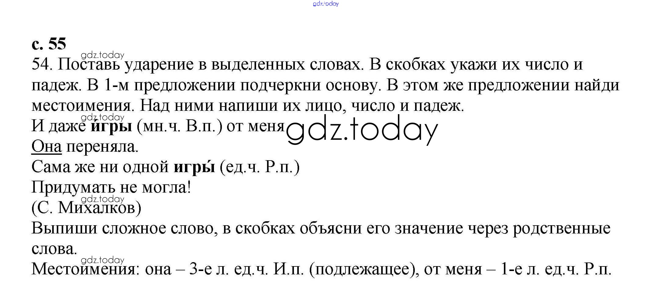 Ответы к Решение. Часть 1. Страницы 55 Тетради для самостоятельной работы по Русскому языку для 3 класса Байкова Академкнига 2017