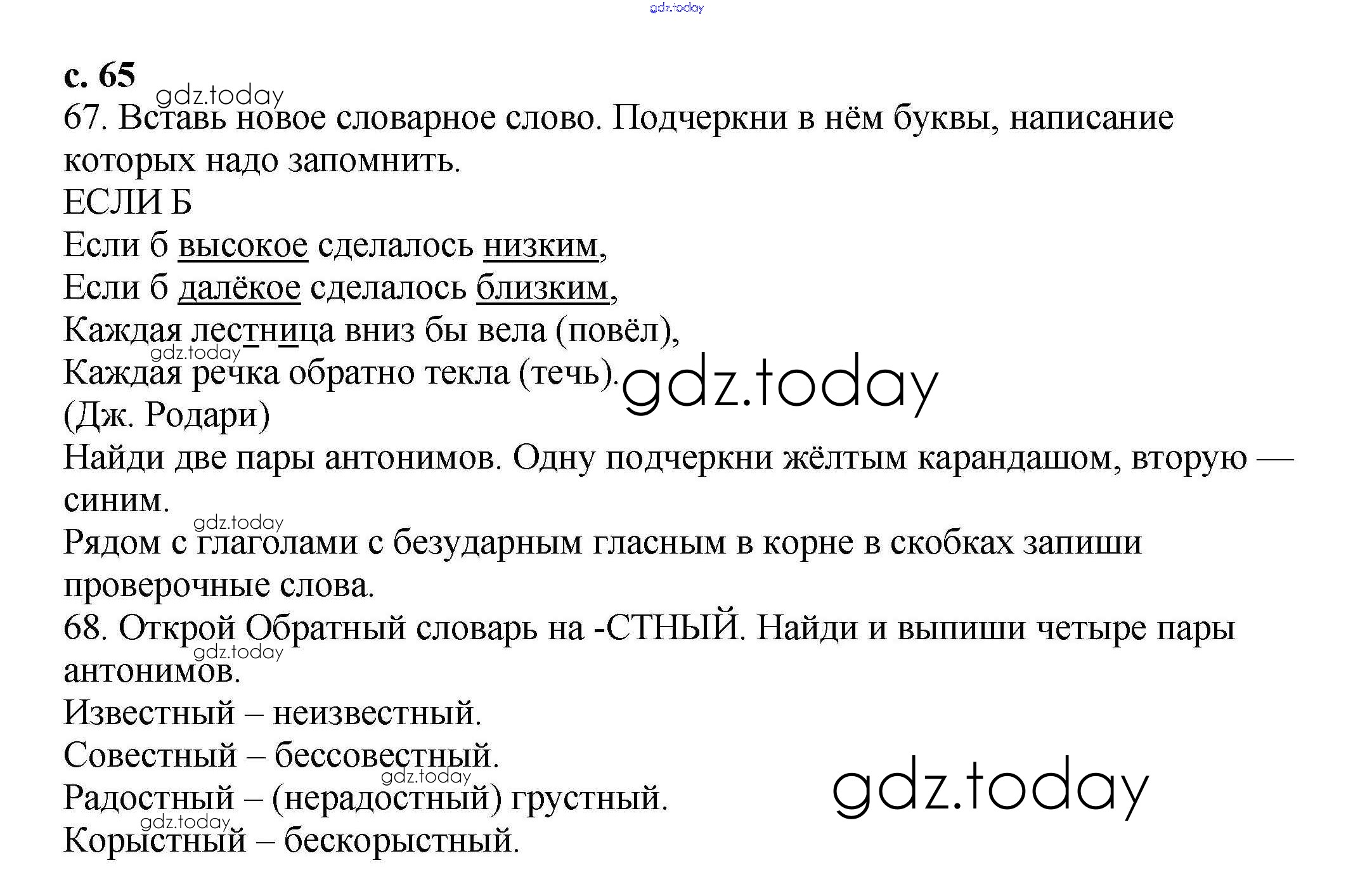 Ответы к Решение. Часть 1. Страницы 65 Тетради для самостоятельной работы по Русскому языку для 3 класса Байкова Академкнига 2017