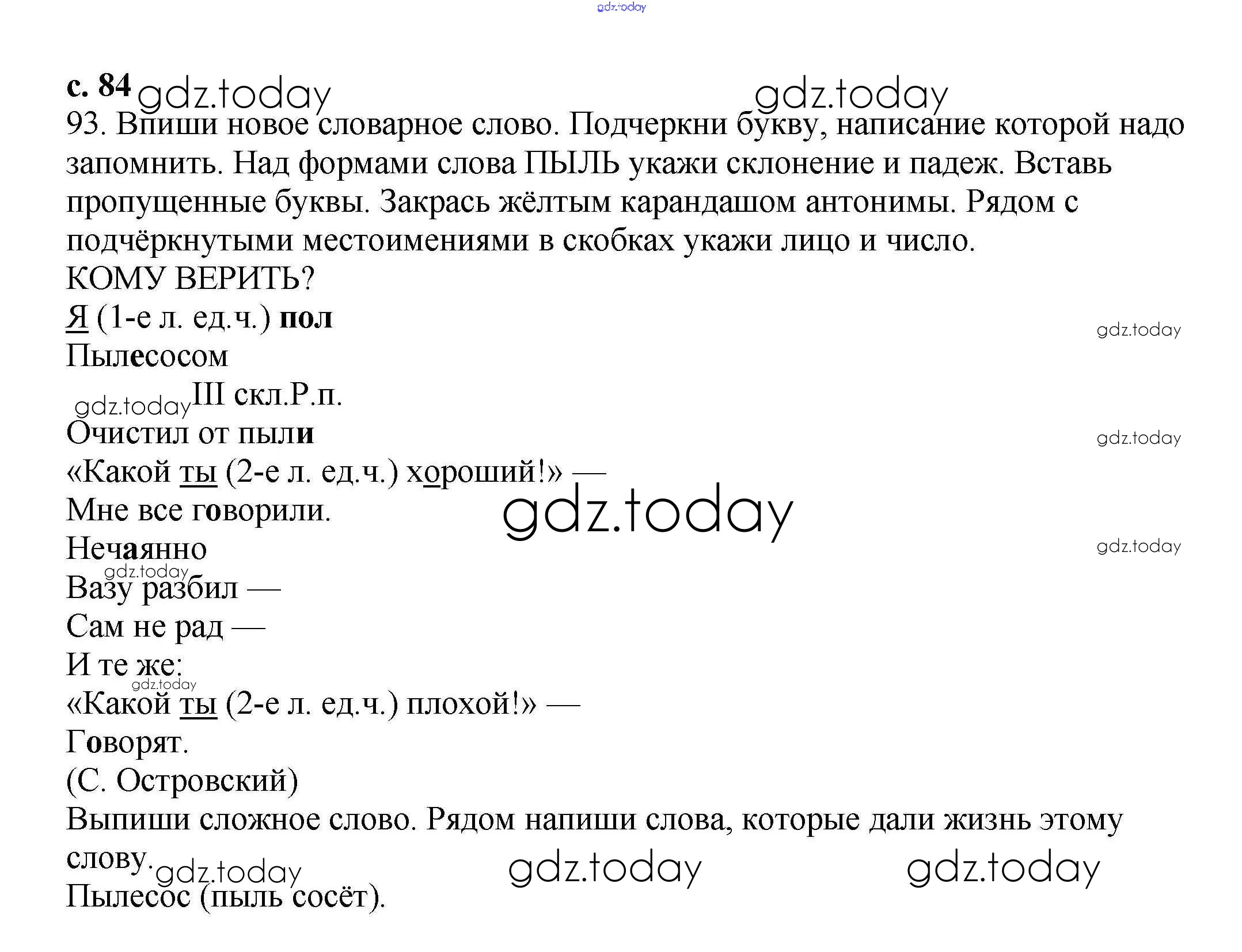 На страницах сайта gdz.today вы найдете учебный и вспомогательный материал, направленный на улучшения знаний школьной программы. ГДЗ - онлайн мир знаний Решение. Часть 1. Страницы 84 Тетради для самостоятельной работы по Русскому языку для 3 класса Байкова Академкнига 2017