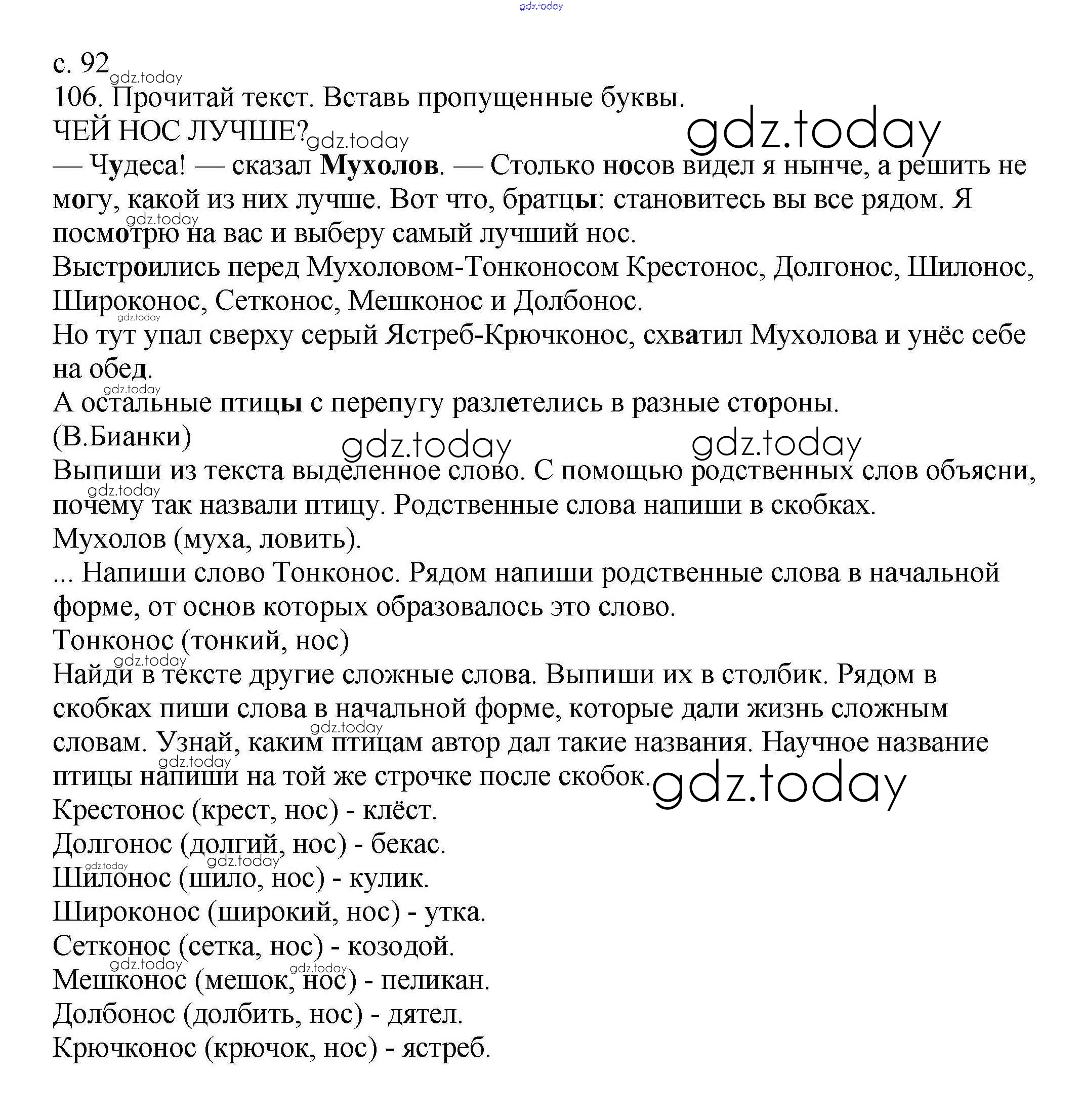 Ответы к Решение. Часть 1. Страницы 92 Тетради для самостоятельной работы по Русскому языку для 3 класса Байкова Академкнига 2017