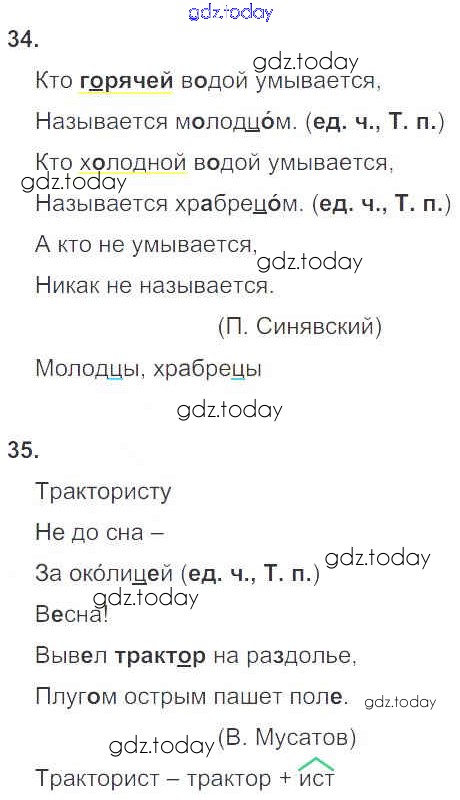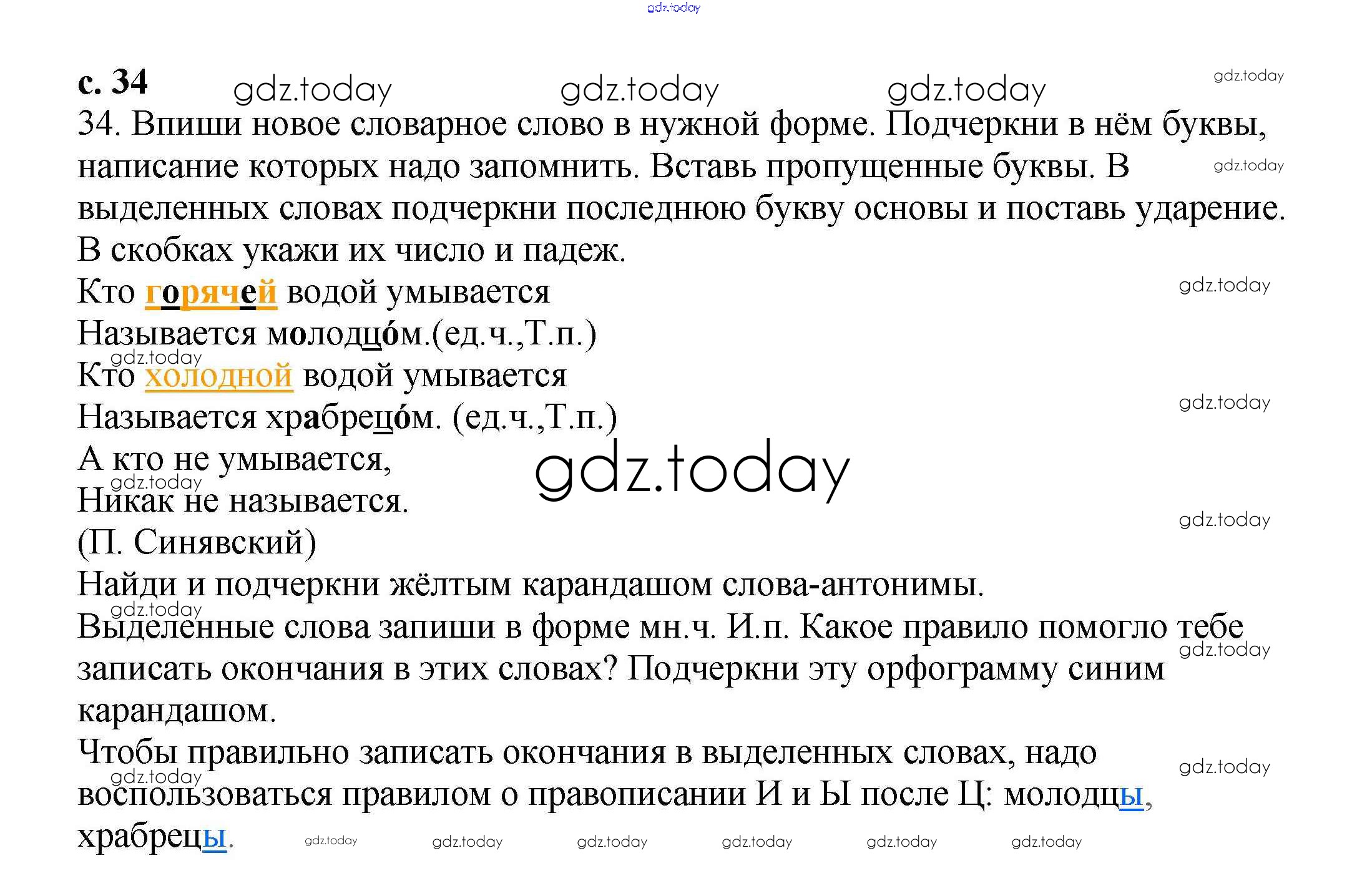 Ответы к Решение. Часть 2. Страницы 34 Тетради для самостоятельной работы по Русскому языку для 3 класса Байкова Академкнига 2017