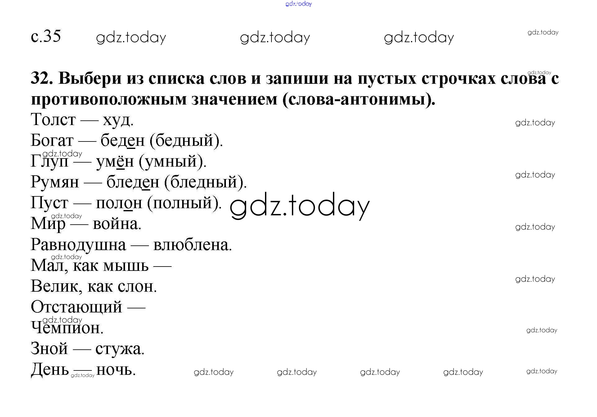 На страницах сайта gdz.today вы найдете учебный и вспомогательный материал, направленный на улучшения знаний школьной программы. ГДЗ - онлайн мир знаний Решение. Часть 2. Страницы 35 Тетради для самостоятельной работы по Русскому языку для 3 класса Байкова Академкнига 2017