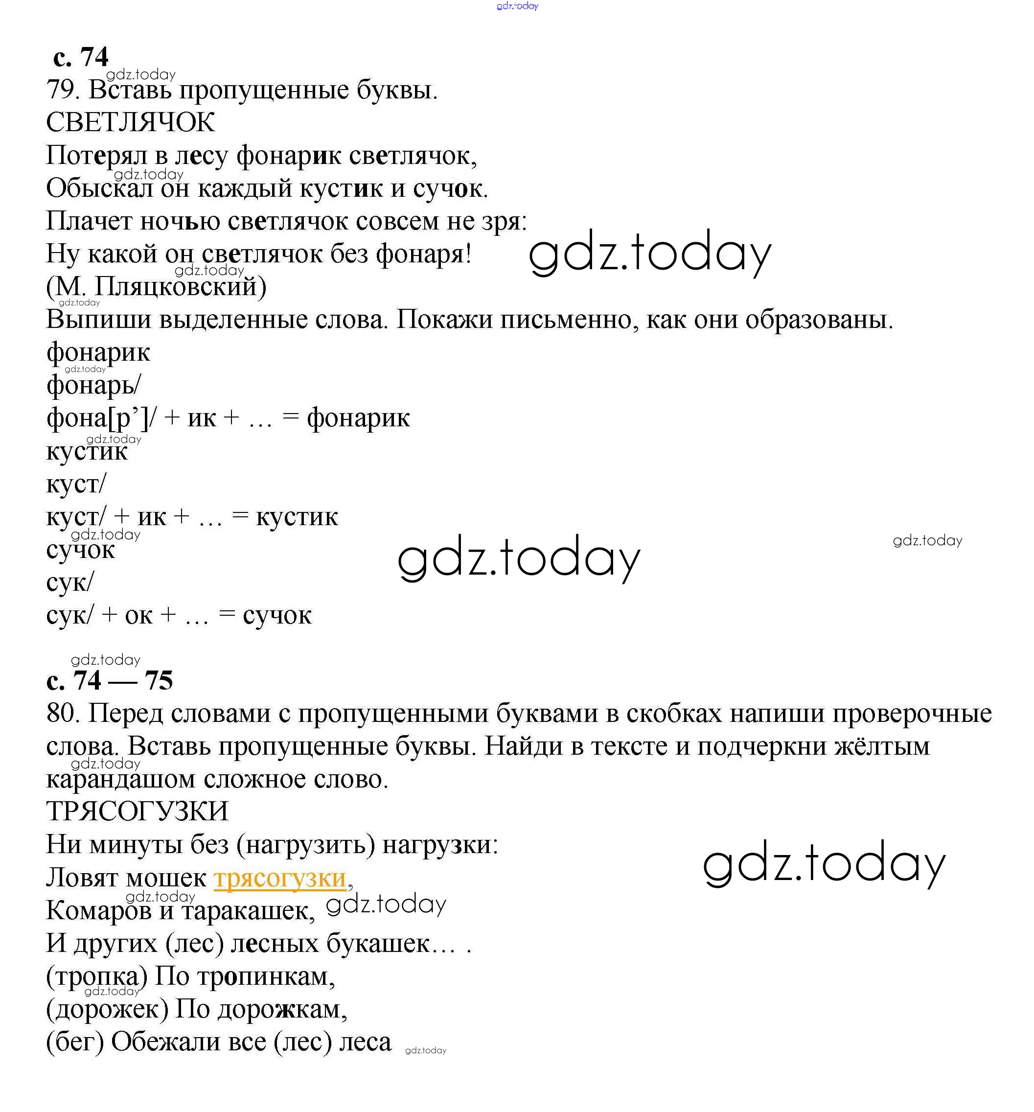 Ответы к Решение. Часть 2. Страницы 74 Тетради для самостоятельной работы по Русскому языку для 3 класса Байкова Академкнига 2017