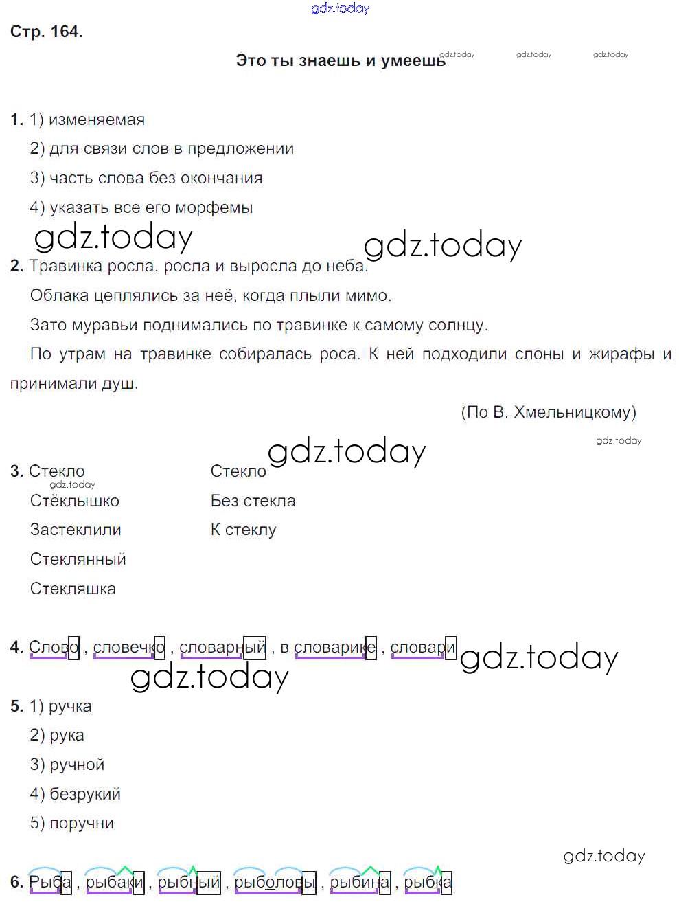 На страницах сайта gdz.today вы найдете учебный и вспомогательный материал, направленный на улучшения знаний школьной программы. ГДЗ - онлайн мир знаний Знаешь, умеешь Решение к части 1. Упражнения стр.164 Учебнику по Русскому языку для 3 класса Бунеев, Бунеева Баласс Школа 2100 2015