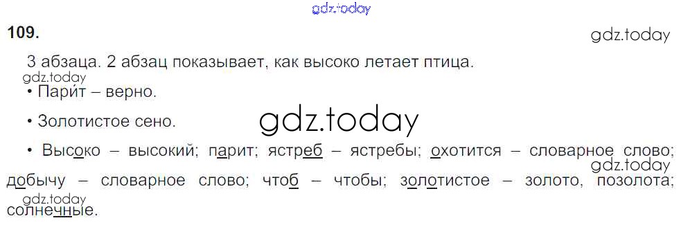 На страницах сайта gdz.today вы найдете учебный и вспомогательный материал, направленный на улучшения знаний школьной программы. ГДЗ - онлайн мир знаний Решение к части 1. Упражнения 109 Учебнику по Русскому языку для 3 класса Бунеев, Бунеева Баласс Школа 2100 2015