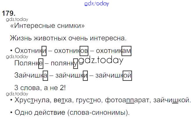 На страницах сайта gdz.today вы найдете учебный и вспомогательный материал, направленный на улучшения знаний школьной программы. ГДЗ - онлайн мир знаний Решение к части 1. Упражнения 179 Учебнику по Русскому языку для 3 класса Бунеев, Бунеева Баласс Школа 2100 2015