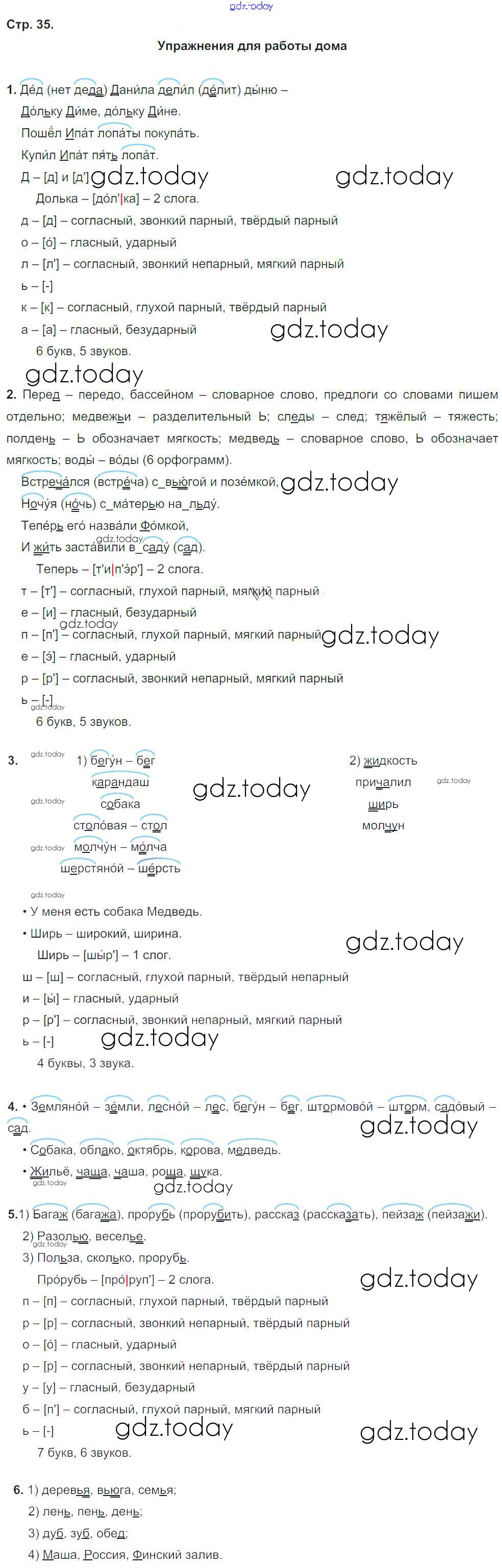 На страницах сайта gdz.today вы найдете учебный и вспомогательный материал, направленный на улучшения знаний школьной программы. ГДЗ - онлайн мир знаний Упражнения для работы дома Решение к части 1. Упражнения стр.35 Учебнику по Русскому языку для 3 класса Бунеев, Бунеева Баласс Школа 2100 2015