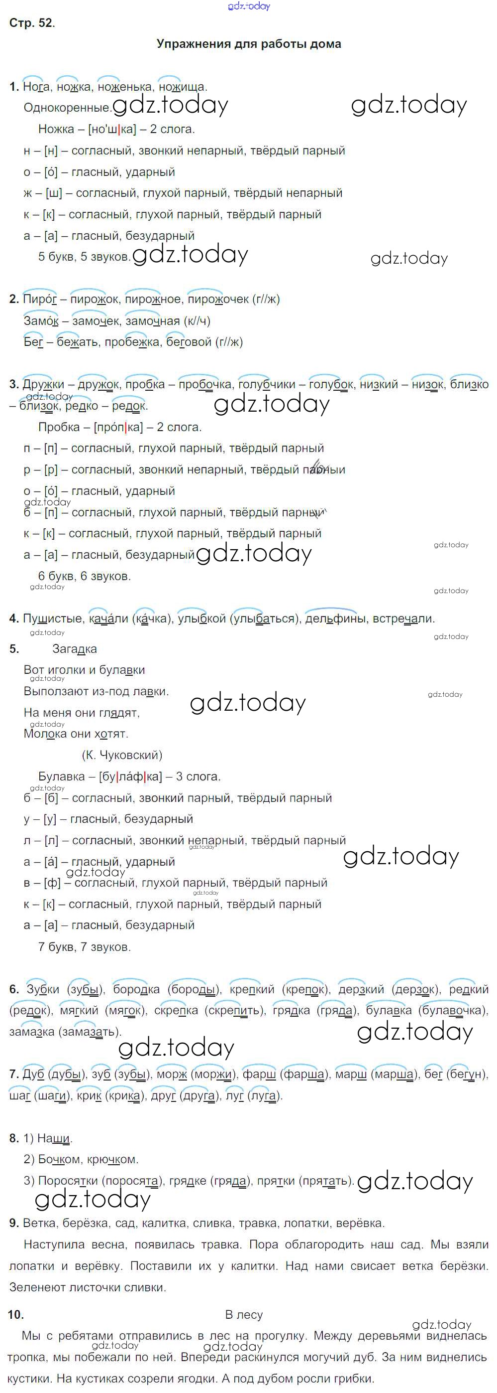 На страницах сайта gdz.today вы найдете учебный и вспомогательный материал, направленный на улучшения знаний школьной программы. ГДЗ - онлайн мир знаний Упражнения для работы дома Решение к части 1. Упражнения стр.52 Учебнику по Русскому языку для 3 класса Бунеев, Бунеева Баласс Школа 2100 2015
