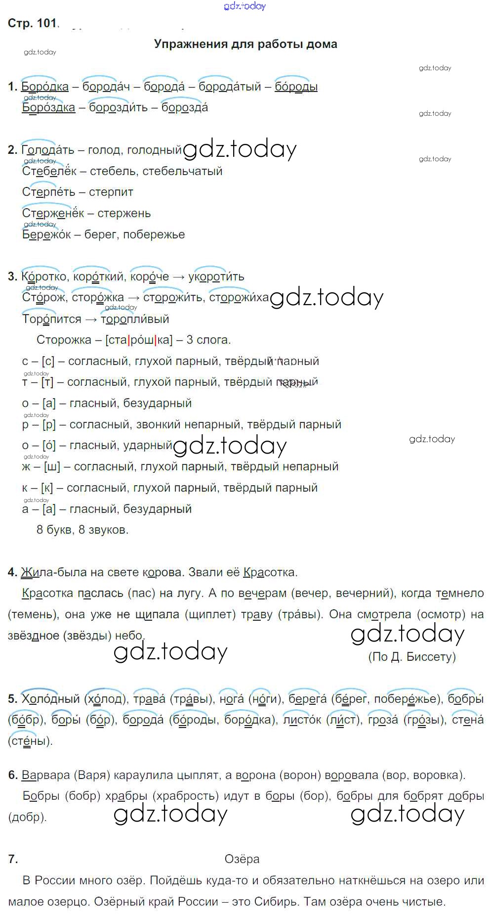 На страницах сайта gdz.today вы найдете учебный и вспомогательный материал, направленный на улучшения знаний школьной программы. ГДЗ - онлайн мир знаний Упражнения для работы дома Решение к части 1. Упражнения стр.101 Учебнику по Русскому языку для 3 класса Бунеев, Бунеева Баласс Школа 2100 2015