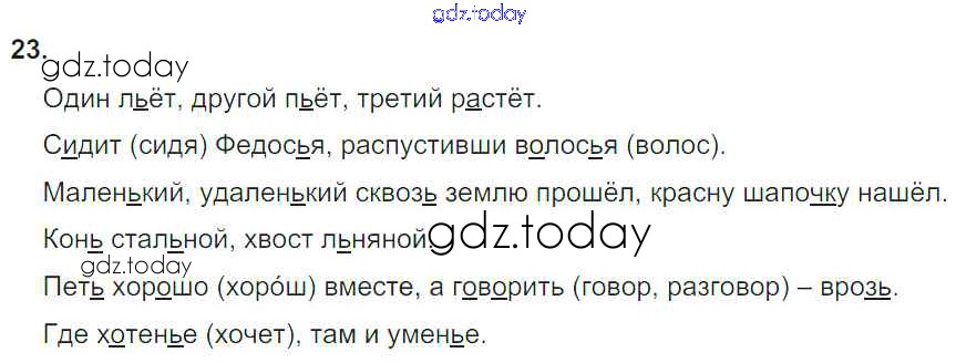 На страницах сайта gdz.today вы найдете учебный и вспомогательный материал, направленный на улучшения знаний школьной программы. ГДЗ - онлайн мир знаний Решение к части 1. Упражнения 23 Учебнику по Русскому языку для 3 класса Бунеев, Бунеева Баласс Школа 2100 2015
