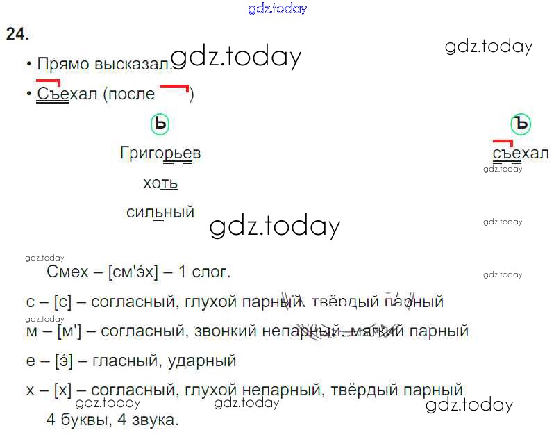 Ответы к Решение к части 1. Упражнения 24 Учебнику по Русскому языку для 3 класса Бунеев, Бунеева Баласс Школа 2100 2015