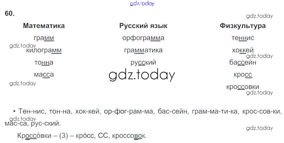 На страницах сайта gdz.today вы найдете учебный и вспомогательный материал, направленный на улучшения знаний школьной программы. ГДЗ - онлайн мир знаний Решение к части 1. Упражнения 60 Учебнику по Русскому языку для 3 класса Бунеев, Бунеева Баласс Школа 2100 2015