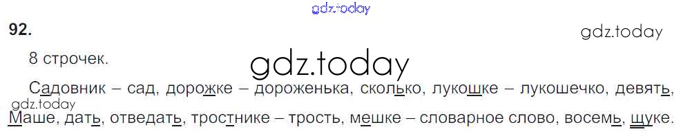 На страницах сайта gdz.today вы найдете учебный и вспомогательный материал, направленный на улучшения знаний школьной программы. ГДЗ - онлайн мир знаний Решение к части 1. Упражнения 92 Учебнику по Русскому языку для 3 класса Бунеев, Бунеева Баласс Школа 2100 2015