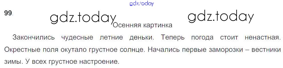 На страницах сайта gdz.today вы найдете учебный и вспомогательный материал, направленный на улучшения знаний школьной программы. ГДЗ - онлайн мир знаний Решение к части 1. Упражнения 99 Учебнику по Русскому языку для 3 класса Бунеев, Бунеева Баласс Школа 2100 2015