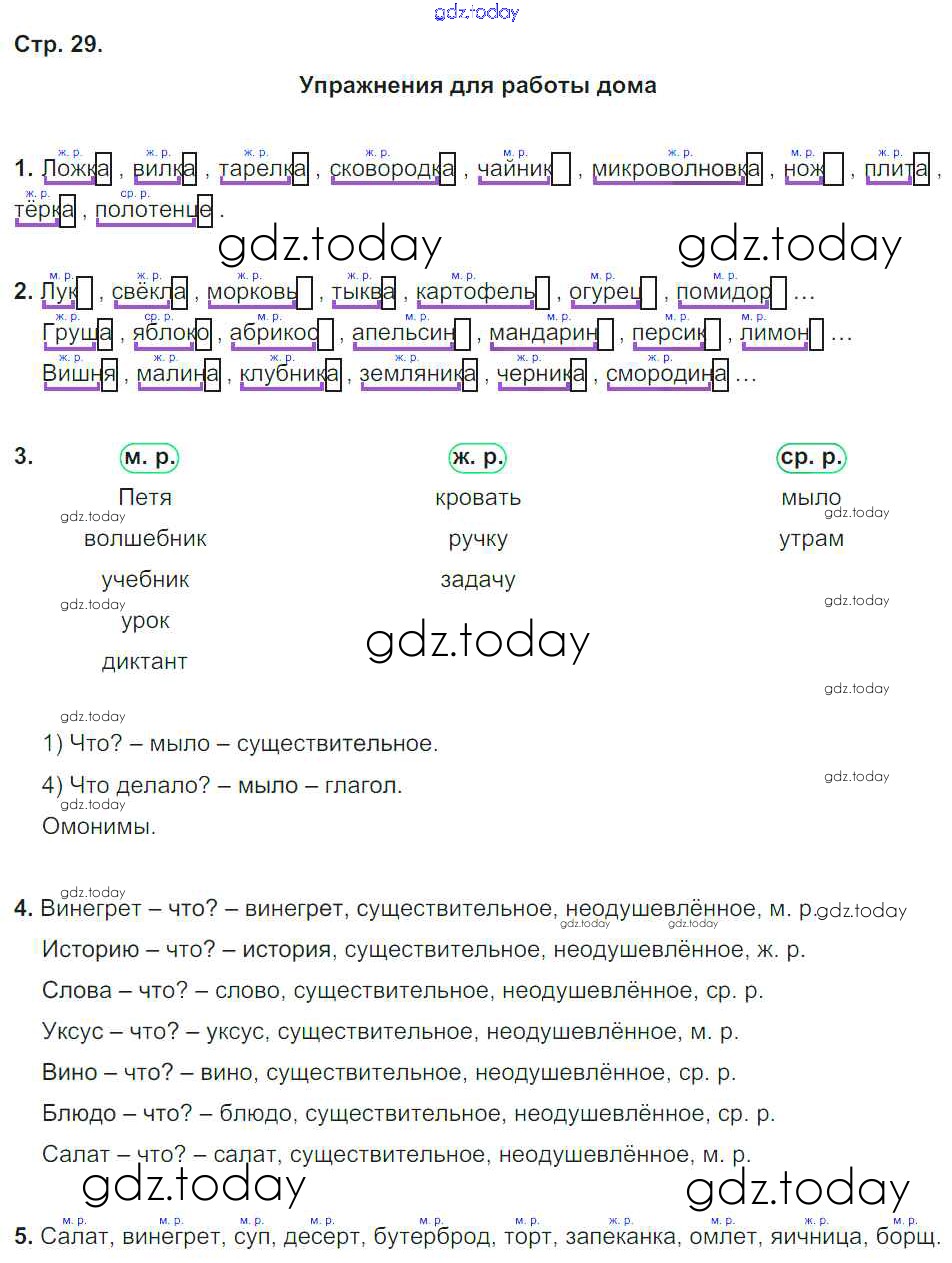 На страницах сайта gdz.today вы найдете учебный и вспомогательный материал, направленный на улучшения знаний школьной программы. ГДЗ - онлайн мир знаний Упражнения для работы дома Решение к части 2. Упражнения стр.29 Учебнику по Русскому языку для 3 класса Бунеев, Бунеева Баласс Школа 2100 2015