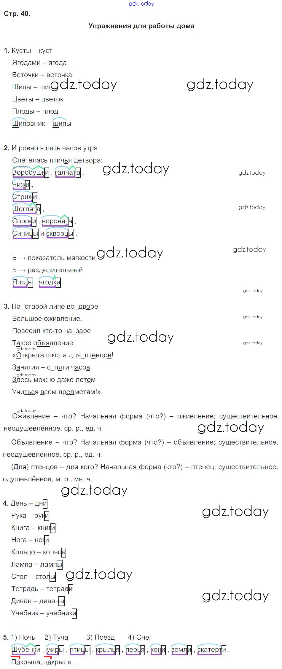 На страницах сайта gdz.today вы найдете учебный и вспомогательный материал, направленный на улучшения знаний школьной программы. ГДЗ - онлайн мир знаний Упражнения для работы дома Решение к части 2. Упражнения стр.40 Учебнику по Русскому языку для 3 класса Бунеев, Бунеева Баласс Школа 2100 2015