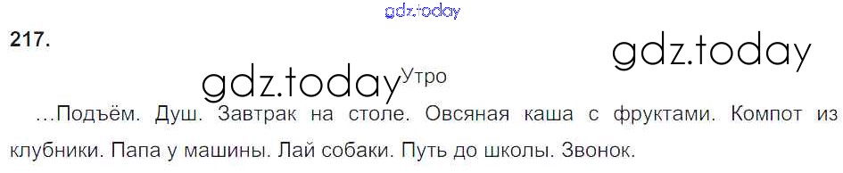 На страницах сайта gdz.today вы найдете учебный и вспомогательный материал, направленный на улучшения знаний школьной программы. ГДЗ - онлайн мир знаний Решение к части 2. Упражнения 217 Учебнику по Русскому языку для 3 класса Бунеев, Бунеева Баласс Школа 2100 2015