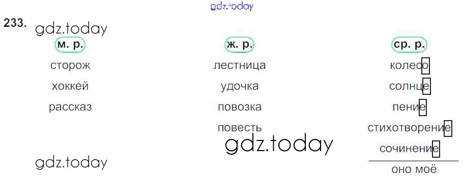 На страницах сайта gdz.today вы найдете учебный и вспомогательный материал, направленный на улучшения знаний школьной программы. ГДЗ - онлайн мир знаний Решение к части 2. Упражнения 233 Учебнику по Русскому языку для 3 класса Бунеев, Бунеева Баласс Школа 2100 2015