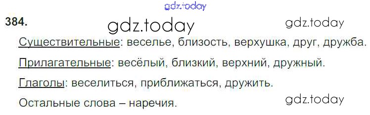 На страницах сайта gdz.today вы найдете учебный и вспомогательный материал, направленный на улучшения знаний школьной программы. ГДЗ - онлайн мир знаний Решение к части 2. Упражнения 384 Учебнику по Русскому языку для 3 класса Бунеев, Бунеева Баласс Школа 2100 2015