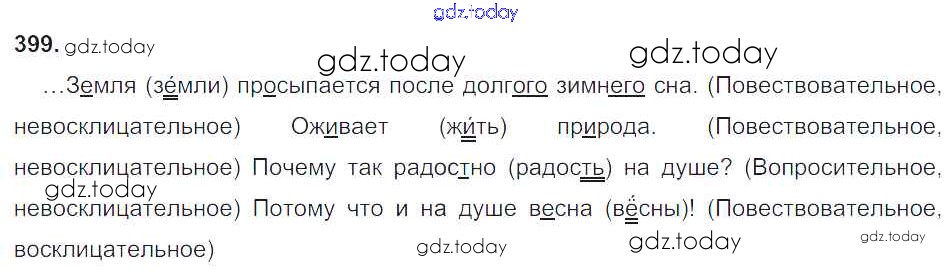 На страницах сайта gdz.today вы найдете учебный и вспомогательный материал, направленный на улучшения знаний школьной программы. ГДЗ - онлайн мир знаний Решение к части 2. Упражнения 399 Учебнику по Русскому языку для 3 класса Бунеев, Бунеева Баласс Школа 2100 2015