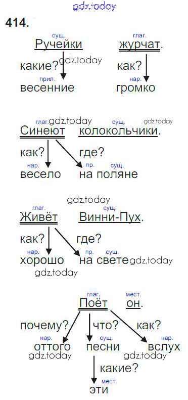 На страницах сайта gdz.today вы найдете учебный и вспомогательный материал, направленный на улучшения знаний школьной программы. ГДЗ - онлайн мир знаний Решение к части 2. Упражнения 414 Учебнику по Русскому языку для 3 класса Бунеев, Бунеева Баласс Школа 2100 2015