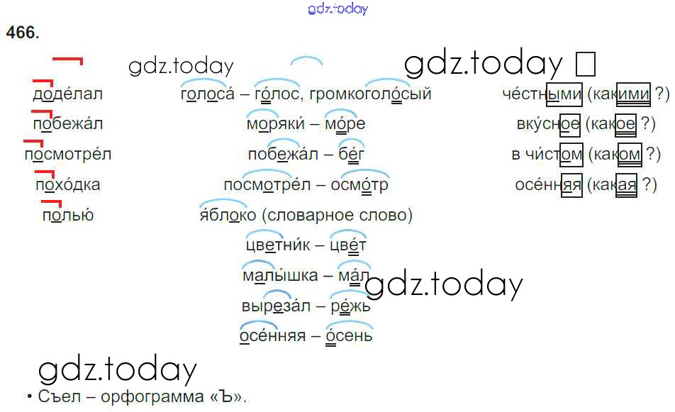 На страницах сайта gdz.today вы найдете учебный и вспомогательный материал, направленный на улучшения знаний школьной программы. ГДЗ - онлайн мир знаний Решение к части 2. Упражнения 466 Учебнику по Русскому языку для 3 класса Бунеев, Бунеева Баласс Школа 2100 2015