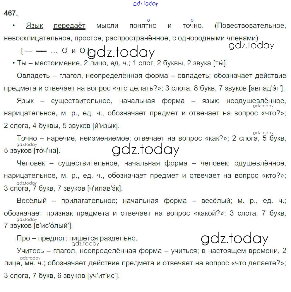 На страницах сайта gdz.today вы найдете учебный и вспомогательный материал, направленный на улучшения знаний школьной программы. ГДЗ - онлайн мир знаний Решение к части 2. Упражнения 467 Учебнику по Русскому языку для 3 класса Бунеев, Бунеева Баласс Школа 2100 2015