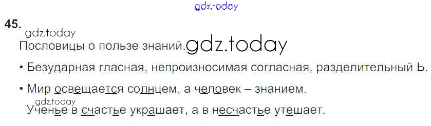 На страницах сайта gdz.today вы найдете учебный и вспомогательный материал, направленный на улучшения знаний школьной программы. ГДЗ - онлайн мир знаний Упражнения Язык и речь 45 Учебнику по Русскому языку для 3 класса Желтовская, Калинина Аст/Астрель Планета знаний 2013