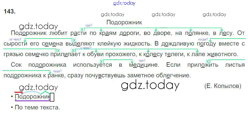 На страницах сайта gdz.today вы найдете учебный и вспомогательный материал, направленный на улучшения знаний школьной программы. ГДЗ - онлайн мир знаний Упражнения Конкретизируем значение 143 Учебнику по Русскому языку для 3 класса Желтовская, Калинина Аст/Астрель Планета знаний 2013