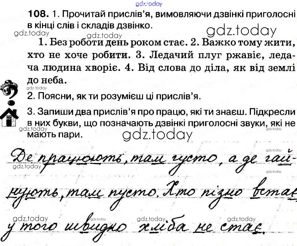 На страницах сайта gdz.today вы найдете учебный и вспомогательный материал, направленный на улучшения знаний школьной программы. ГДЗ - онлайн мир знаний Рішення до Вправи 108 Рабочей тетради по Украинскому языку для 3 класса Васильковская, Мельничайко Освiта 2014