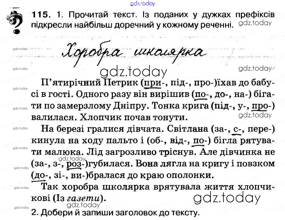 На страницах сайта gdz.today вы найдете учебный и вспомогательный материал, направленный на улучшения знаний школьной программы. ГДЗ - онлайн мир знаний Рішення до Вправи 115 Рабочей тетради по Украинскому языку для 3 класса Васильковская, Мельничайко Освiта 2014
