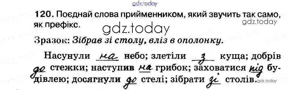 На страницах сайта gdz.today вы найдете учебный и вспомогательный материал, направленный на улучшения знаний школьной программы. ГДЗ - онлайн мир знаний Рішення до Вправи 120 Рабочей тетради по Украинскому языку для 3 класса Васильковская, Мельничайко Освiта 2014