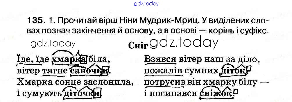 На страницах сайта gdz.today вы найдете учебный и вспомогательный материал, направленный на улучшения знаний школьной программы. ГДЗ - онлайн мир знаний Рішення до Вправи 135 Рабочей тетради по Украинскому языку для 3 класса Васильковская, Мельничайко Освiта 2014