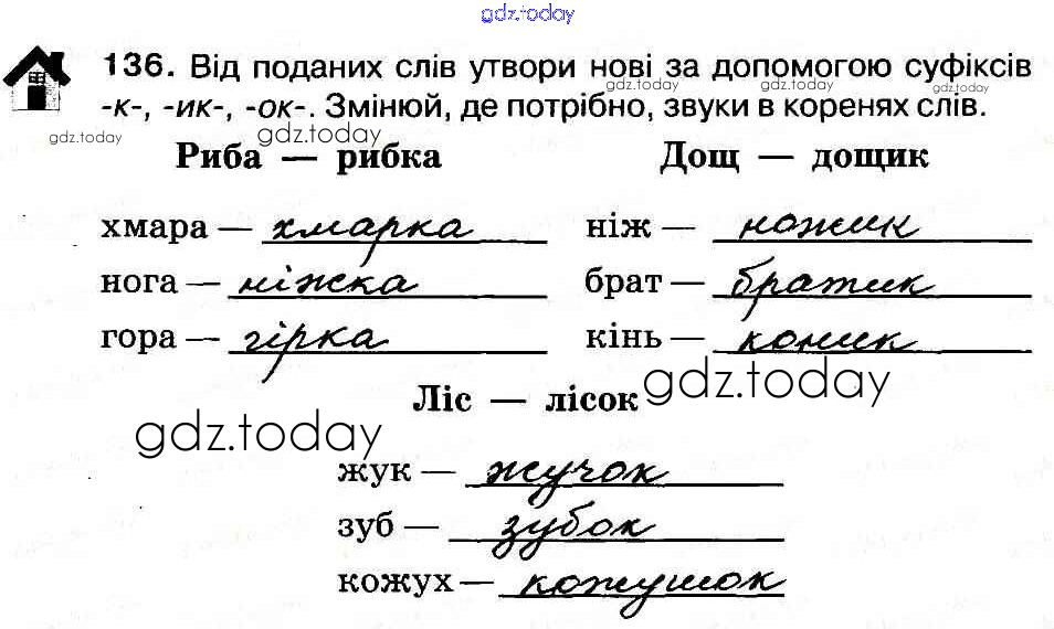 На страницах сайта gdz.today вы найдете учебный и вспомогательный материал, направленный на улучшения знаний школьной программы. ГДЗ - онлайн мир знаний Рішення до Вправи 136 Рабочей тетради по Украинскому языку для 3 класса Васильковская, Мельничайко Освiта 2014